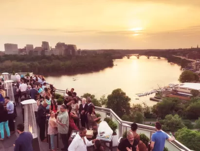 An award-winning open-air rooftop, Top of the Gate offers 360-degree views of the Kennedy Center, Potomac River, the Key and Arlington bridges, Washington Monument and the DC skyline.