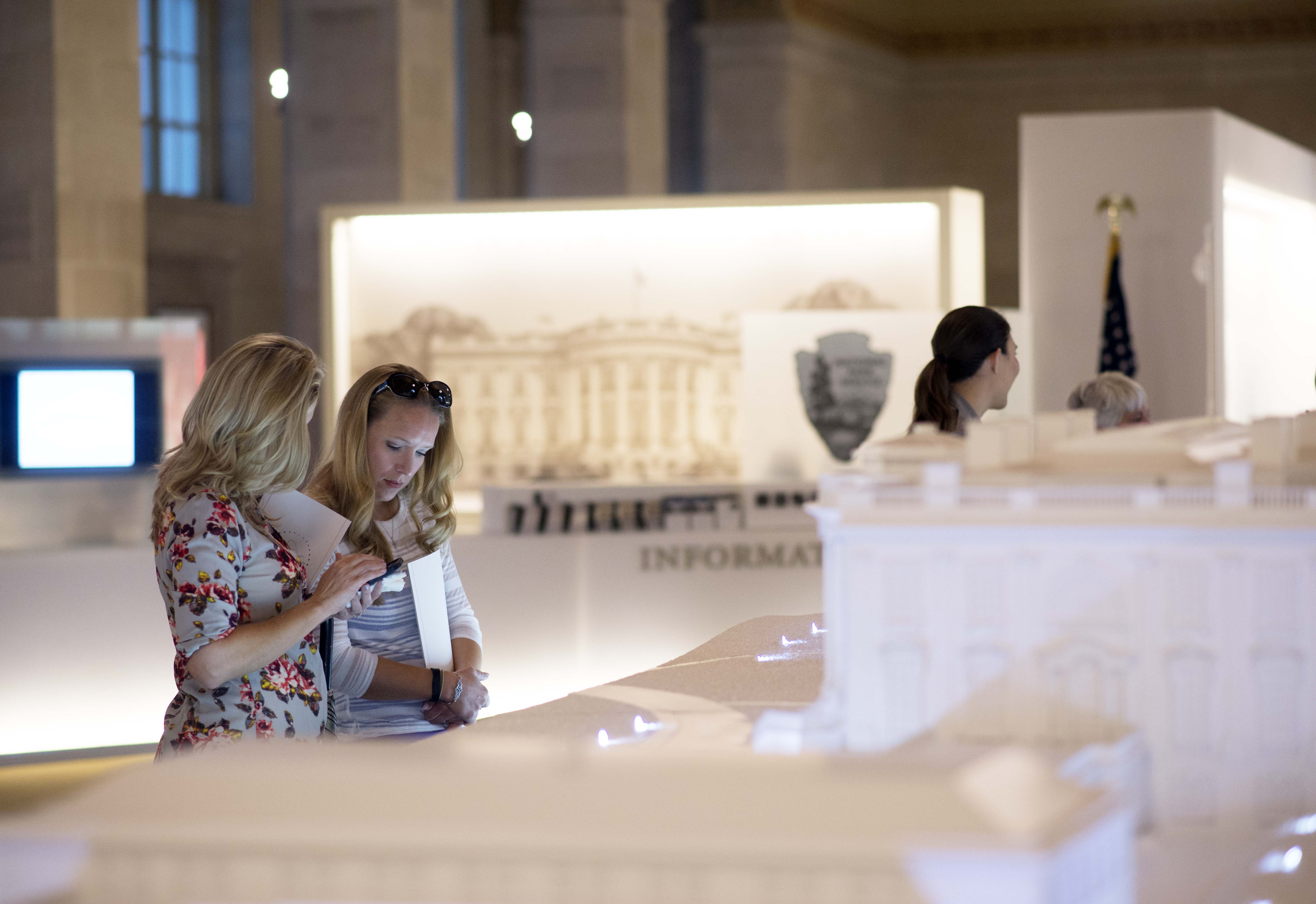 The White House Visitor Center is a nearly 1,600-square-foot museum-caliber visitor experience featuring interactive exhibits, a large-scale model of the White House, numerous tactile exhibits, museum galleries, a temporary exhibit area, and the White House Historical Association retail shop. The Visitor Center provides a window into the Executive Mansion and its history as a companion to a White House tour, or as a stand-alone experience for those without a tour. Nearly 100 artifacts are on display, some for the first time such as President Franklin D. Roosevelt’s desk.