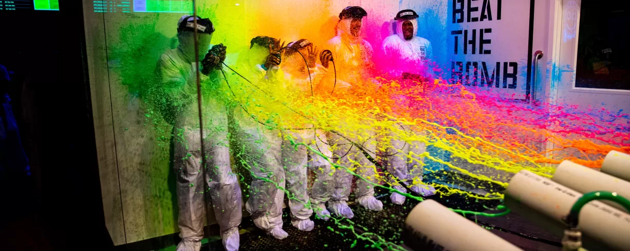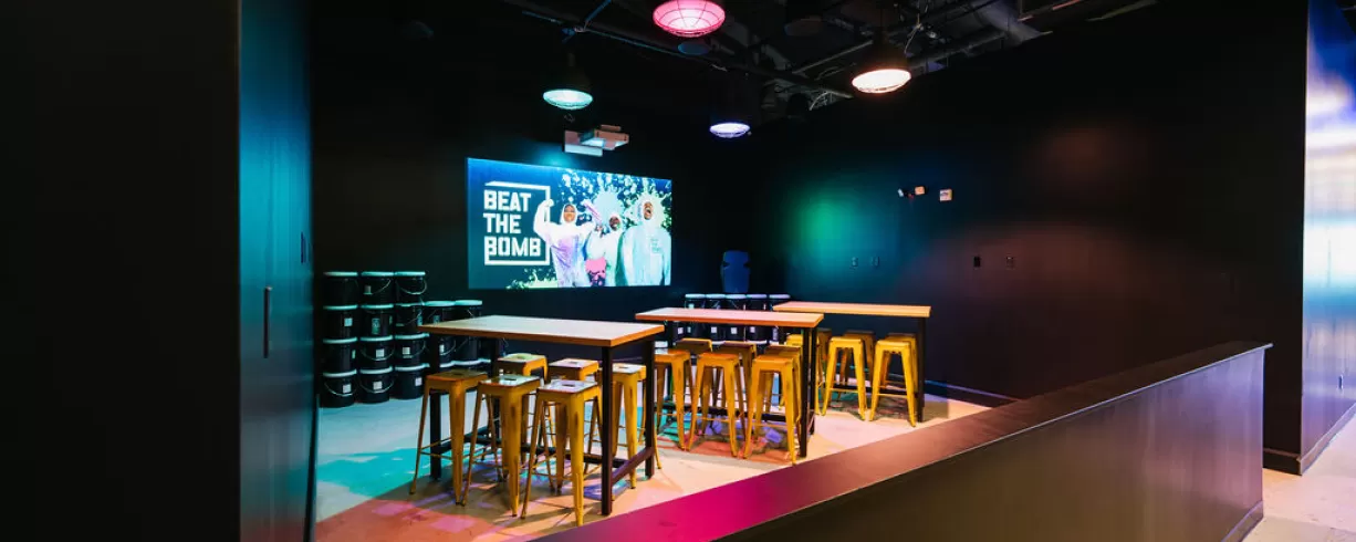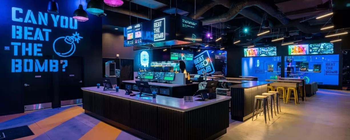 Step into a real-life video game at Beat The Bomb! Team up with friends, family, or co-workers to tackle the ultimate mission: dodge lasers and solve puzzles to disarm the world’s largest paint, foam, or slime bomb before it explodes! Afterward, hit the Arcade Bay for more arcade games or recharge at The Bomb Bar with food and drinks. Whether you’re in it for the challenge, the camaraderie, or just a great time, you’re in for a blast—literally!