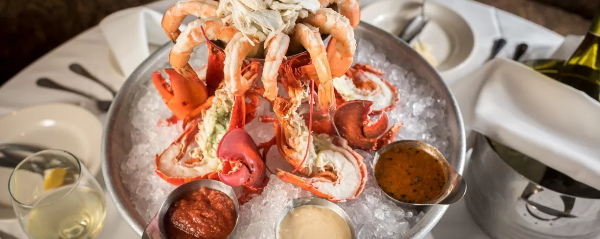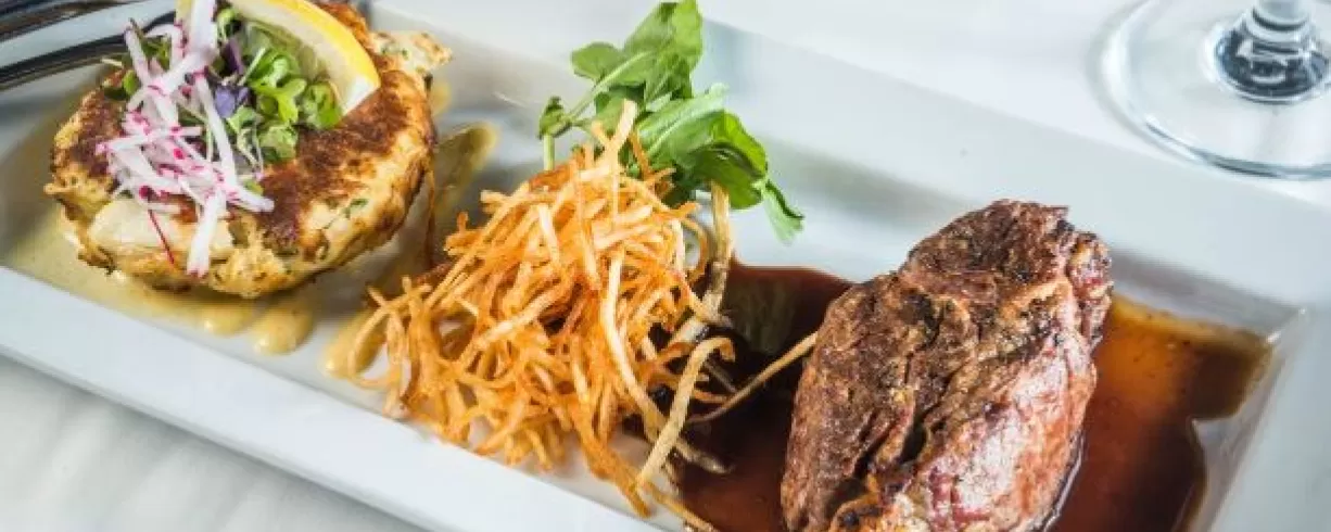 Located 3 blocks west of the Convention Center. Steakhouse menu features Prime, dry-aged beef, chops and fresh seafood.