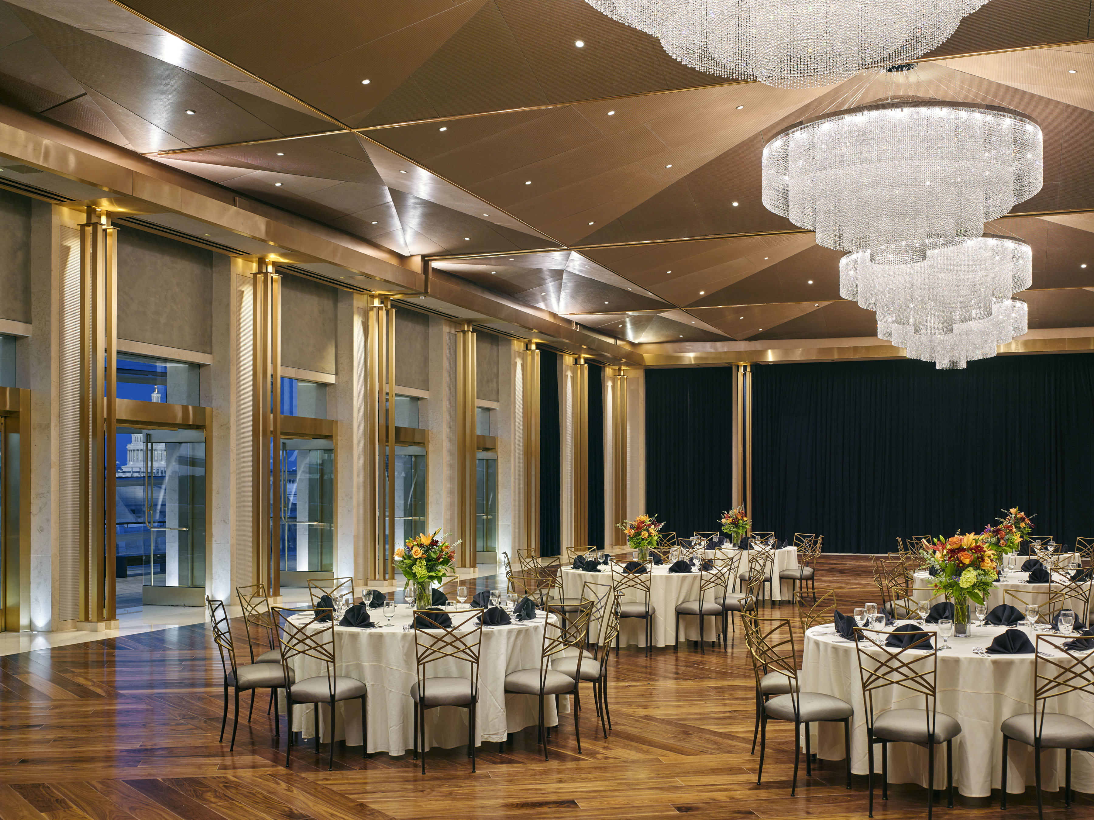 Gathering Room: Top-floor panoramic DC views, seats 400 theater-style or 500 reception