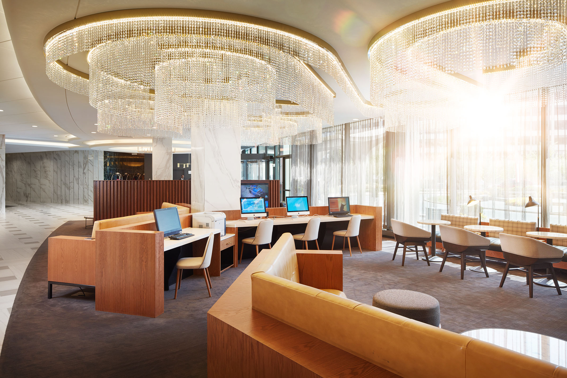 Recently RENOVATED and inspired by the hotel’s original design with classic white marble, warm birch woods and cool brushed steel, the bright and airy lobby is a hub for attendees to engage, grab a gourmet coffee at District Line Cafe & Market, enjoy handcrafted cocktails at Sidecar Bar or savor regionally-inspired cuisine at Four Oaks Restaurant.
