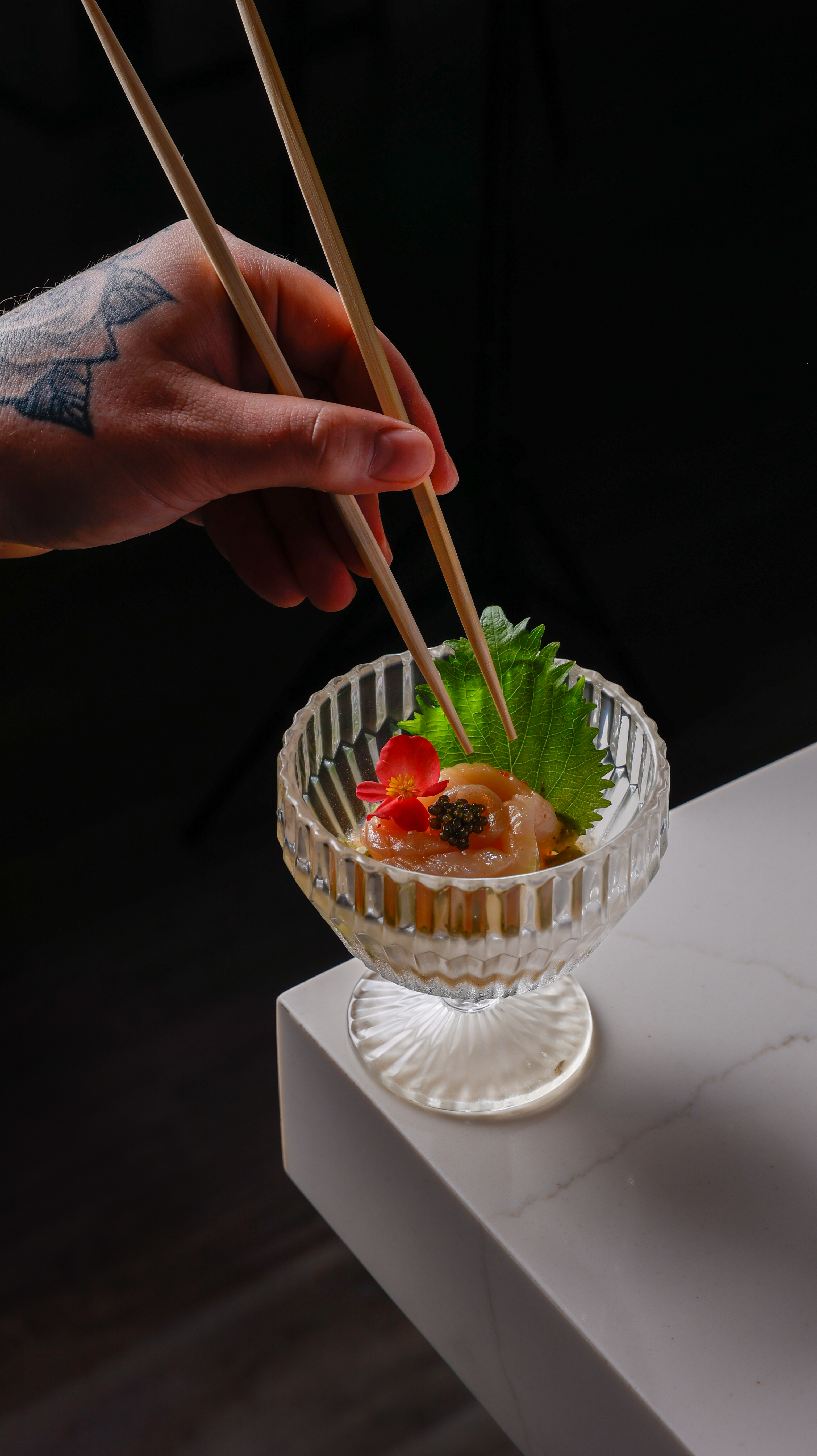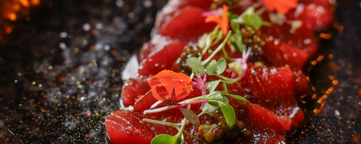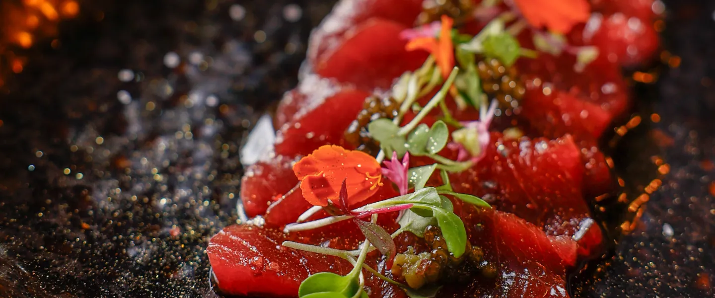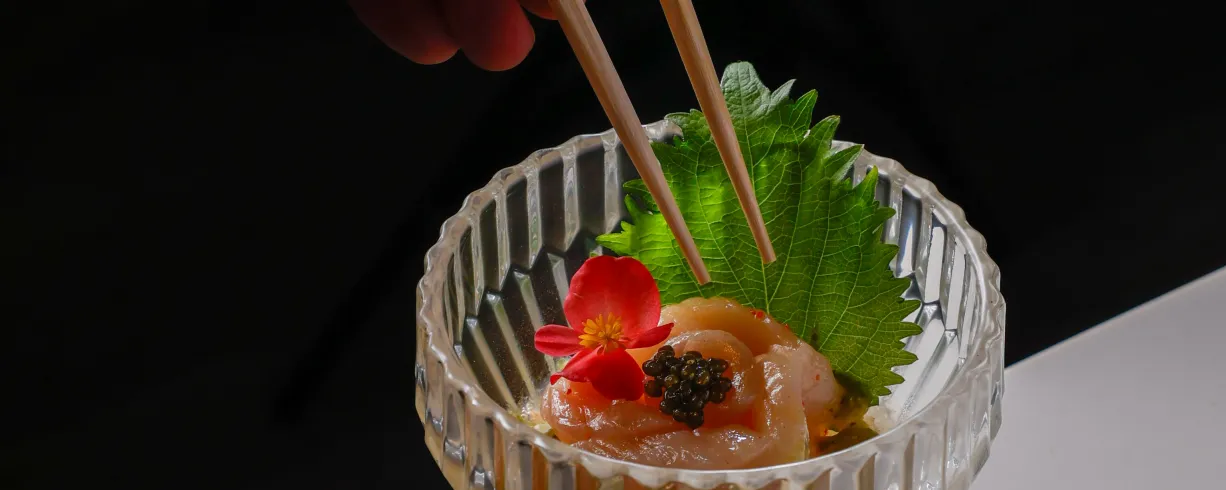 Our space features an expansive 17-seat sushi counter, a six-seat cocktail bar, open table seating, and a seasonal patio that’s perfect for warm-weather gatherings. Hand-painted Japanese murals and graffiti-lined walls create an environment that’s both visually memorable and casually inviting. Led by Culinary Director and Executive Chef Saran “Peter” Kannasute, the menu focuses on premium seasonal ingredients sourced globally, with options for both informal and curated events.