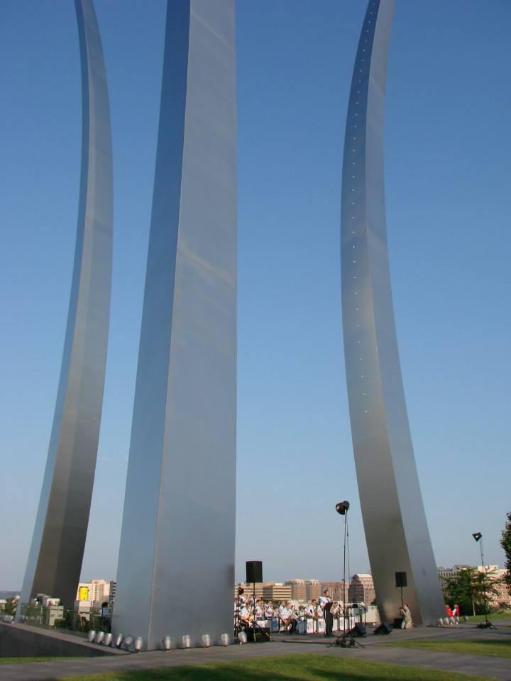 Located in Arlington, VA, the United States Air Force Memorial honors the service and heritage of the men and women of the United States Air Force. The three stainless steel spires reach a height of 402 feet above sea-level. It is adjacent to the Arlington National Cemetery and overlooks the Pentagon.