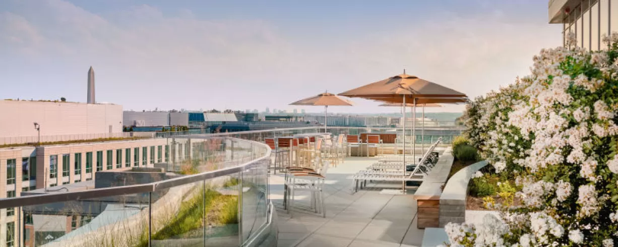 Upscale D.C. venue near the Convention Center with Capitol views, top AV meeting room, luxe lounge, and full-floor rooftop for events.