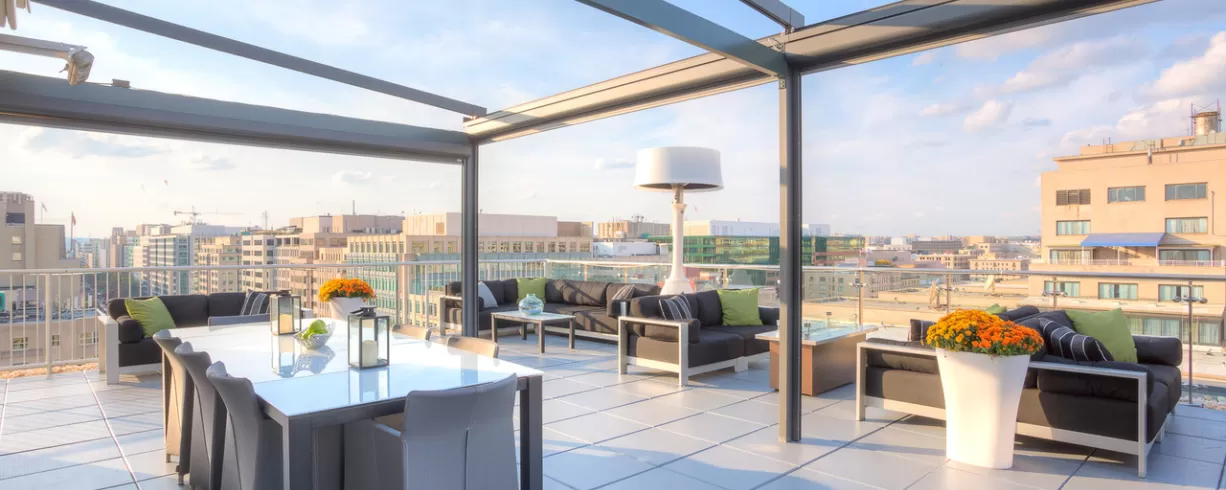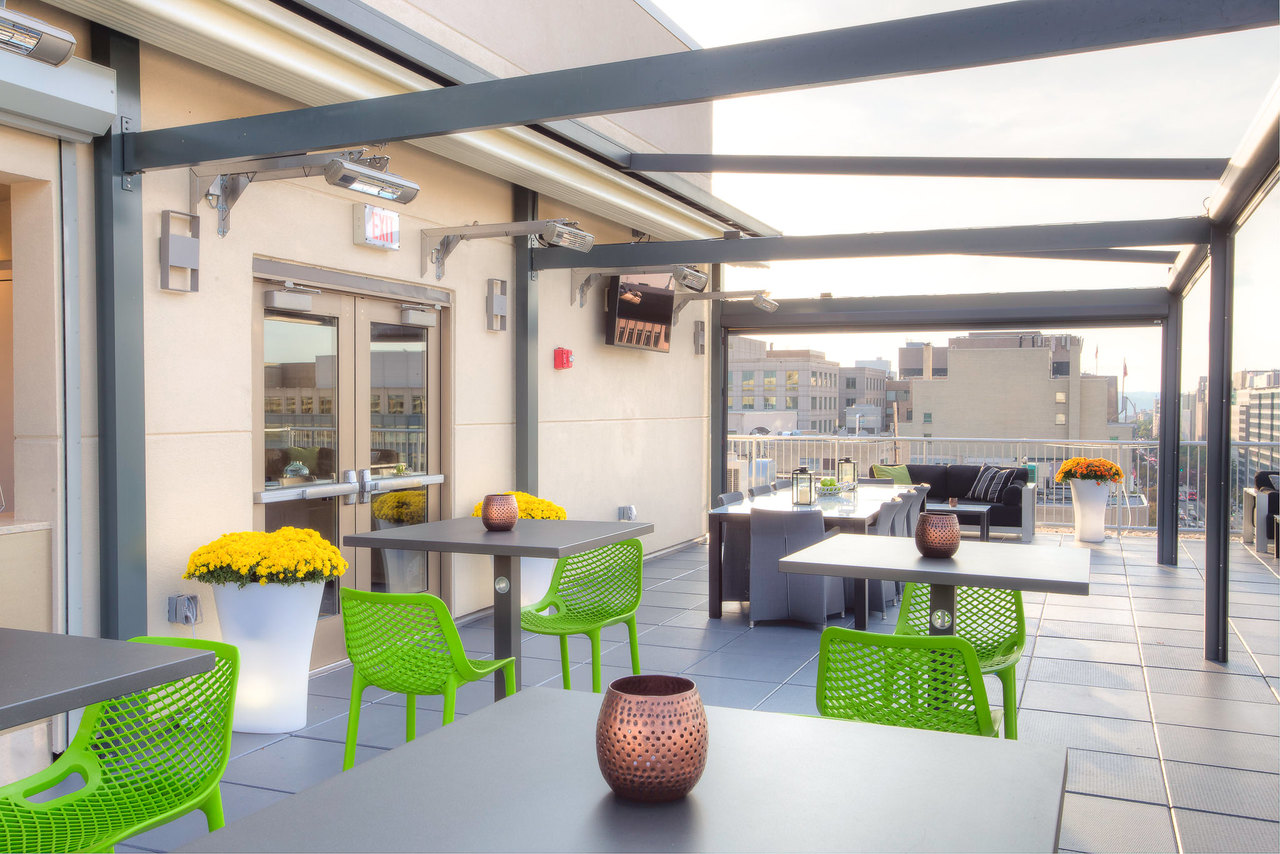 Hotel features the Ellipse Rooftop Bar - a sleek modern bar with sweeping views of downtown DC. Available to rent out for private events.