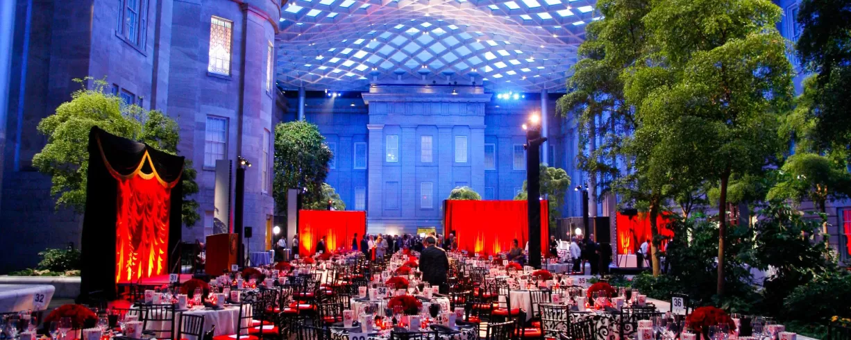 Host your corporate special event at one of Washington's most elegant and dazzling venues. Whether you are planning an intimate dinner for 100 guests or a cocktail reception for 1200, the Smithsonian American Art Museum, housed in a gloriously renovated National Historic Landmark building, is sure to make your next event picture perfect. The Robert and Arlene Kogod Courtyard, with its elegant glass canopy, is one of the largest and most magnificent event spaces in Washington. Designed by the world-renowned architectural firm Foster + Partners, the enclosed courtyard provides a distinctive, contemporary accent to the museums' Greek Revival building. The spectacular decor of the Victorian-embellished Great Hall includes columns and an intricate stained glass rotunda and was the site of President Lincoln's second inaugural ball. The Luce Foundation Center for American Art displays block-long skylights showcasing more than 3,300 works of art on two balconied levels overlooking a marble-floored sculpture gallery. Visit our events page for more details.