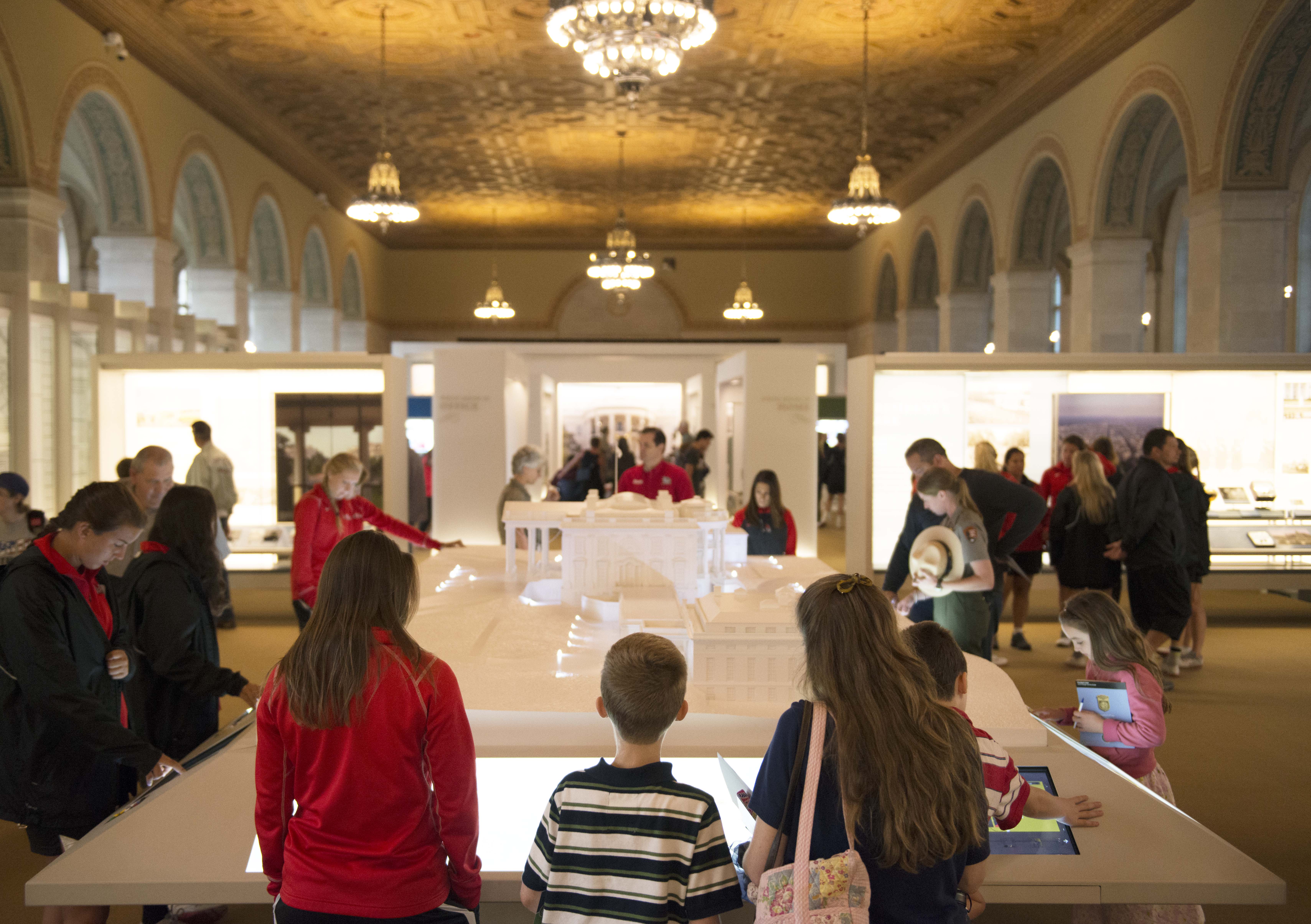 The White House Visitor Center is a nearly 1,600 square foot museum-caliber visitor experience featuring interactive exhibits, a large-scale model of the White House, numerous tactile exhibits, museum galleries, a temporary exhibit area, and the White House Historical Association retail shop. The Visitor Center provides a window into the Executive Mansion and its history as a companion to a White House tour, or as a stand-alone experience for those without a tour. Nearly 100 artifacts are on display, some for the first timesuch as President Franklin D. Roosevelt’s desk.
